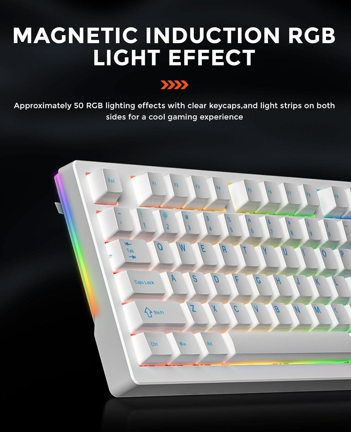 KEYBOARD-All in one drive: preset settings for two classic game configurations in the driver. 50 kinds of RGB light effects, macro, and more key functions can be set in the drives.TKL form factor but full-size functionality. stable aluminum positioning plate.fully transparent keycaps for style and practicality.Magnetic sensing RGB lighting effects and side ambient lighting.All games that pursue timing, precision, and instant action need it.