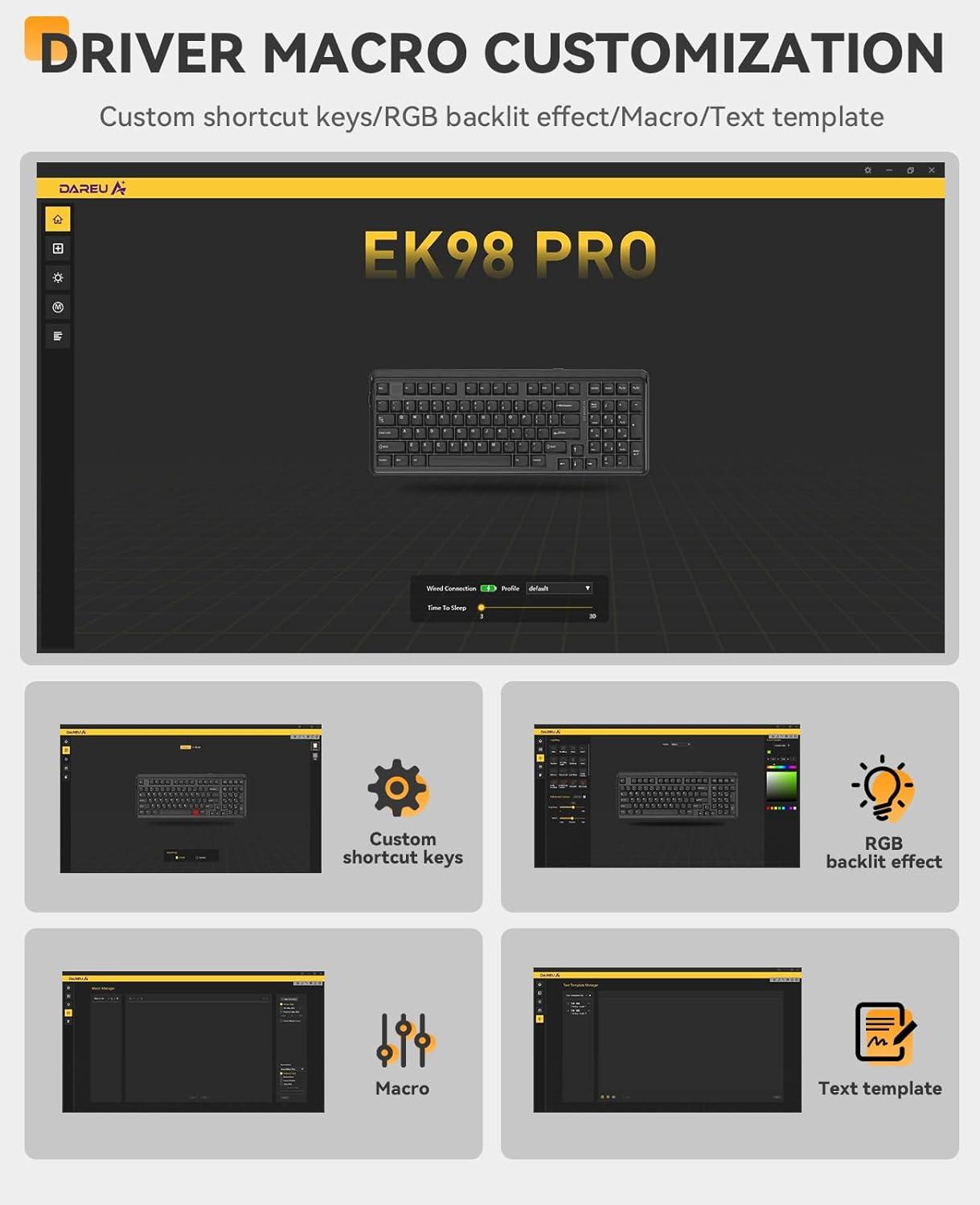 HOT-SWAPPABLE CUSTOM KEYBOARD-EK98Pro computer keyboard is equipped with pre-lubed Hifi Dream linear switch, whose feeling is similar to the linear red switch, but lighter and cleaner sounding. The keyboard is built in a hot-swappable PCB that supports both 3 or 5 pins switches, you can freely change switches according to your needs. Large keys are used in the third generation of satellite shafts making the left and right ends of the keys more synchronized, and smoother feel.