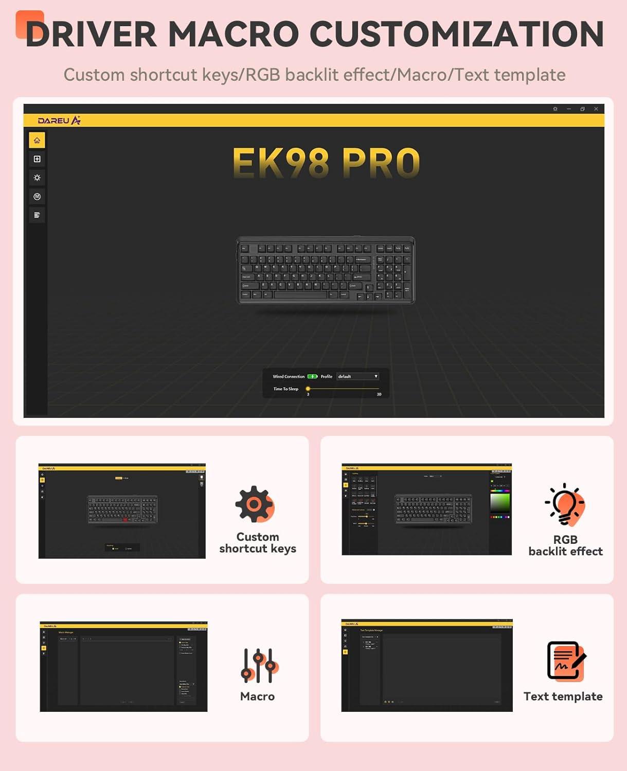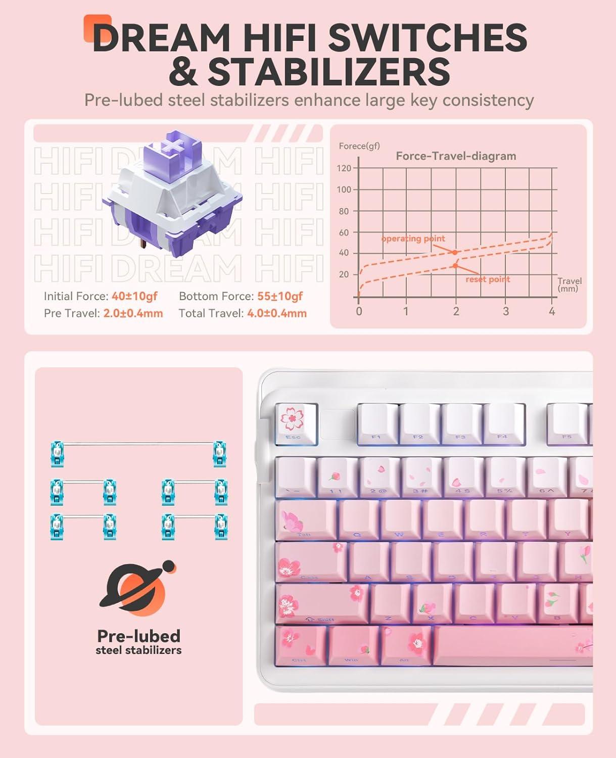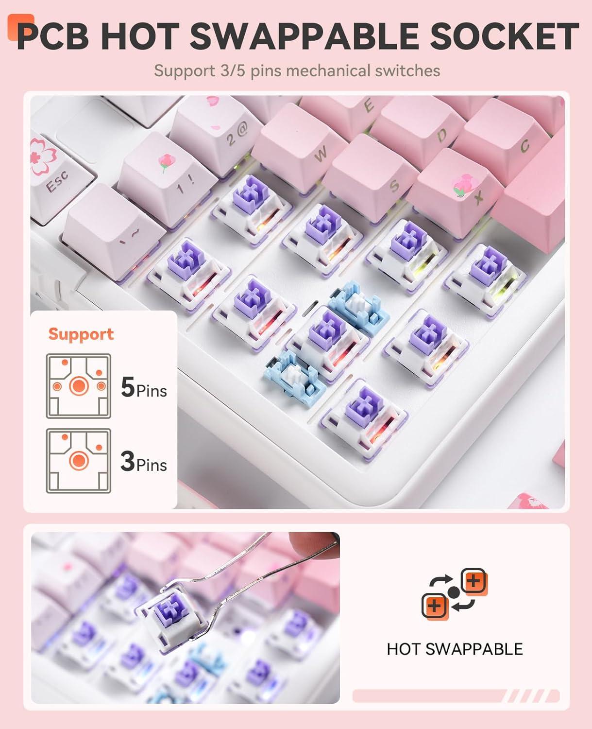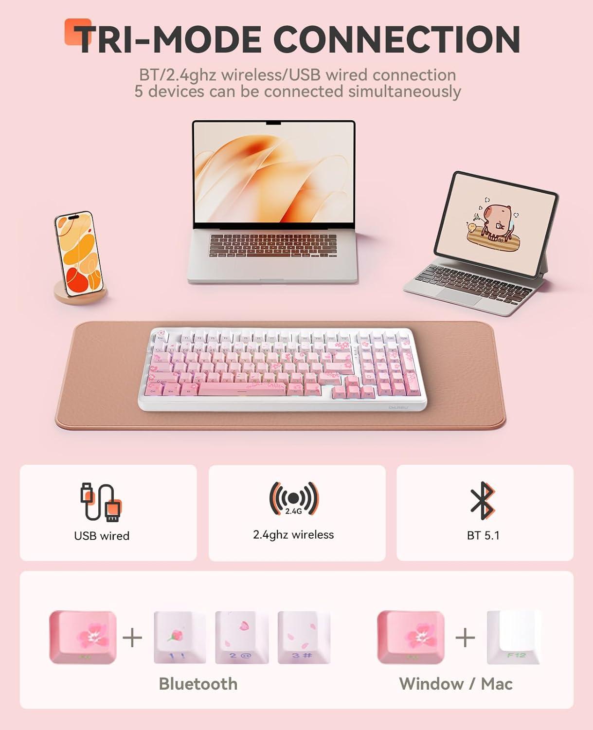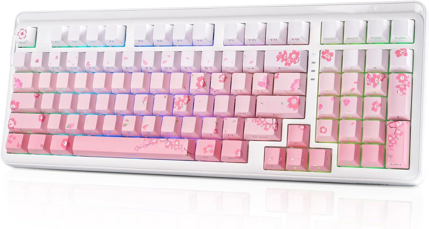 DAREU EK98pro Sakura Pink Wireless Mechanical Keyboard,Tri-Mode BT/2.4GHz/USB-C Creamy Gaming Keyboard with Number Pad,Gasket Structure,Hot Swappable Custom,RGB Backlit for Win/Mac(Sakura Pink)