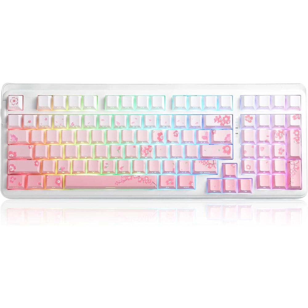 DAREU EK98pro Sakura Pink Wireless Mechanical Keyboard,Tri-Mode BT/2.4GHz/USB-C Creamy Gaming Keyboard with Number Pad,Gasket Structure,Hot Swappable Custom,RGB Backlit for Win/Mac(Side Printed-Cloudy Aqua)