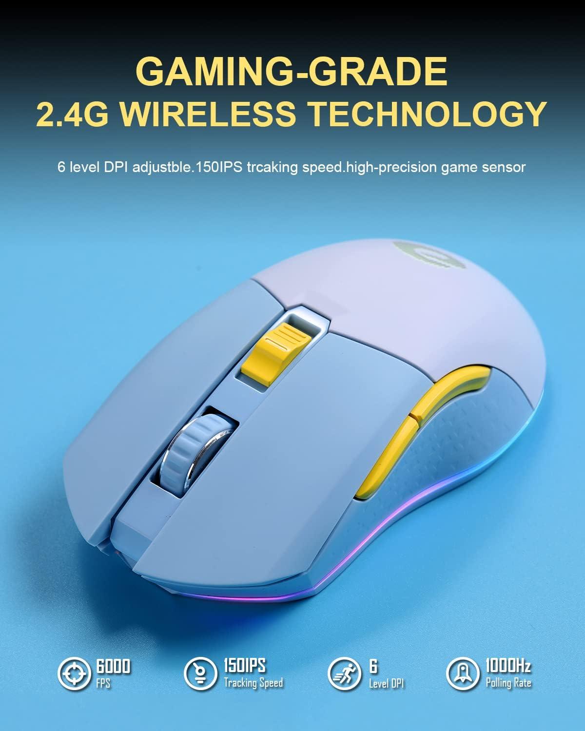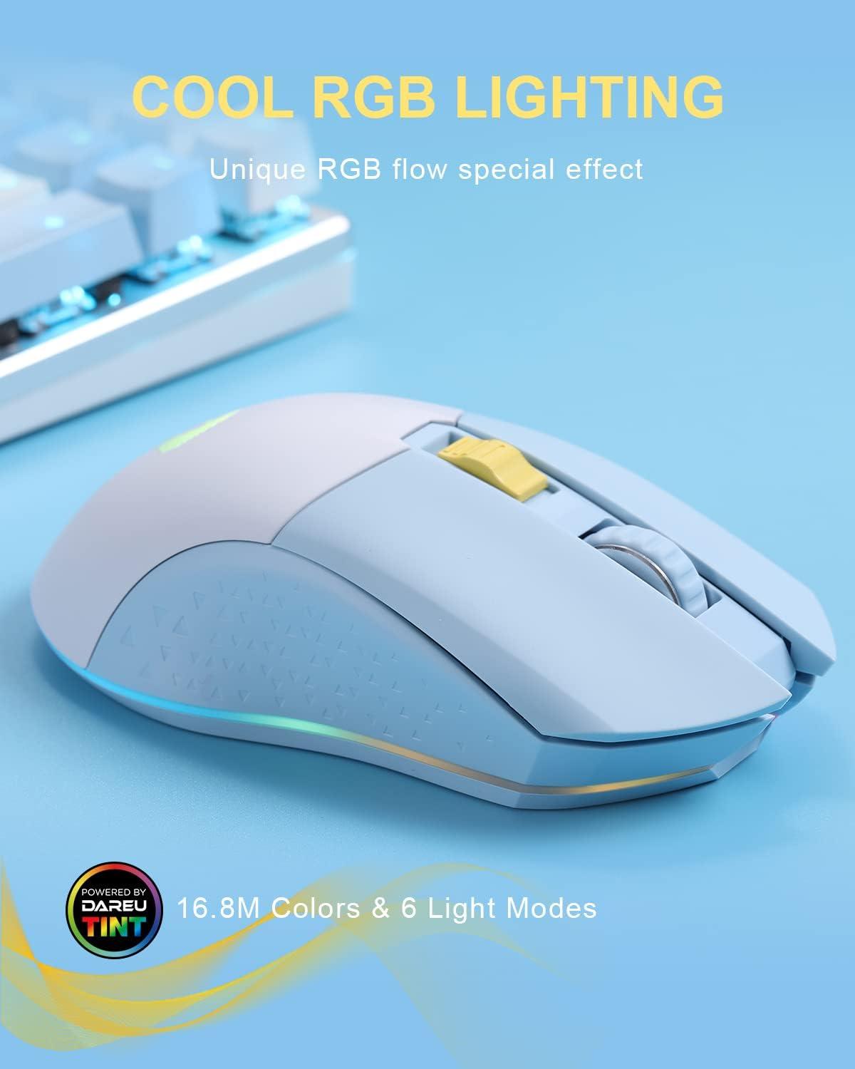 DAREU EM901X Wireless Gaming Mouse with Charging Dock Rechargeable RGB,12K DPI,7 Programmable Buttons High-Precision Sensor [300IPS] [1000Hz] for PC Notebook Mac(Blue&White)