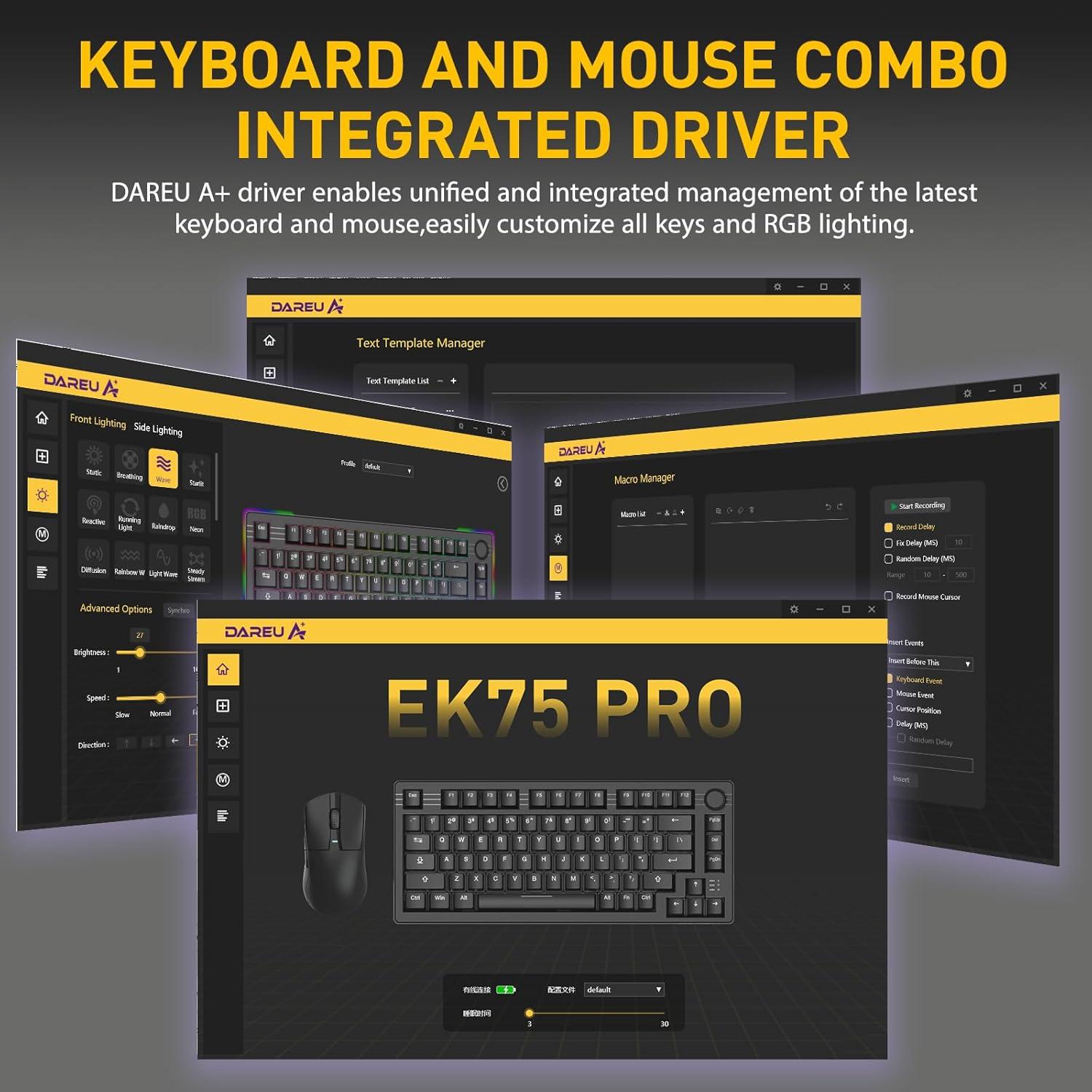 DAREU Wireless Keyboard and Mouse:EK75 PRO 75% Wireless Mechanical Gaming Keyboard &A950 Wing 35g Ultra-Lightweight 8K Polling Rate Wireless Gaming Mouse Combo