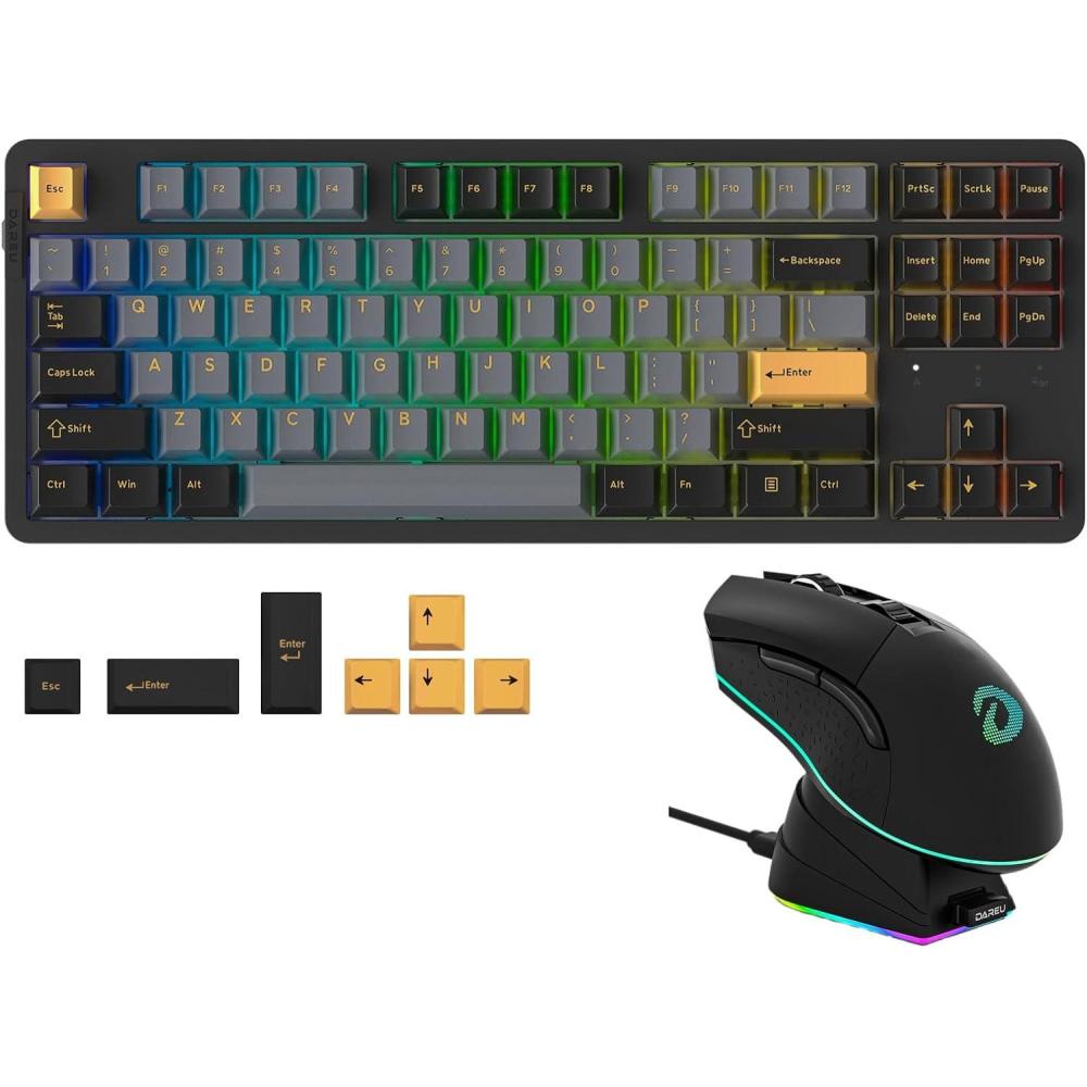 KEYBOARD:TRI-MODE CONNECTION & HOT-SWAPPABLE-support BT 5.1/2.4GHz wireless/USB C wired three connection methods. It can be connected to up to five devices at the same time,all 87 keys are conflict-free, helpful for using hotkeys, or in a highly exciting real-time game.Equipped with pre-lubed Hifi Dream linear switch, whose feeling is similar to the linear red switch, but lighter and cleaner sounding, built in a hot-swappable PCB that supports almost 3 or 5 pins switches on the market.